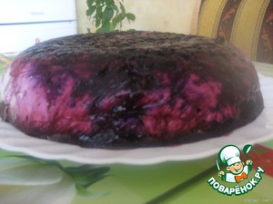 Форму (у меня миска) вытилаем плёнкой, на дно высыпаем ягоды.
