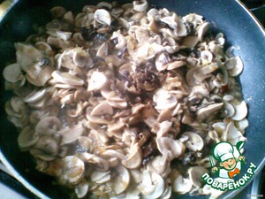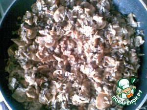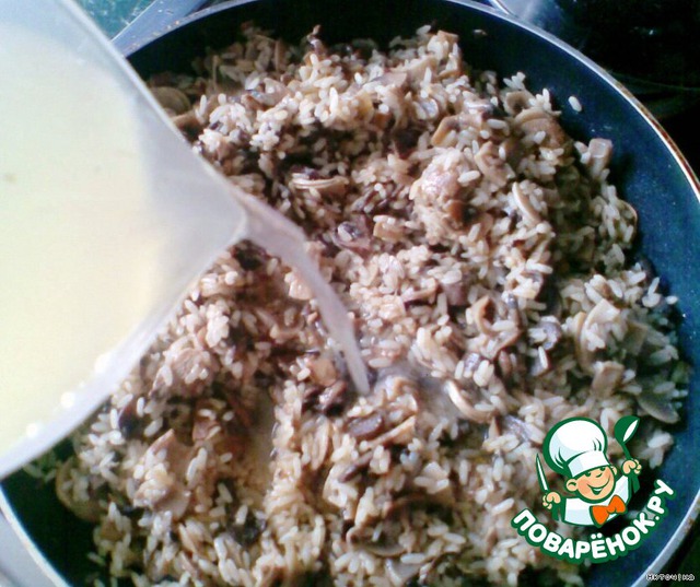 4. Затем вливаем туда то, что от замоченных сухих грибов осталось... ждём, пока впитается...