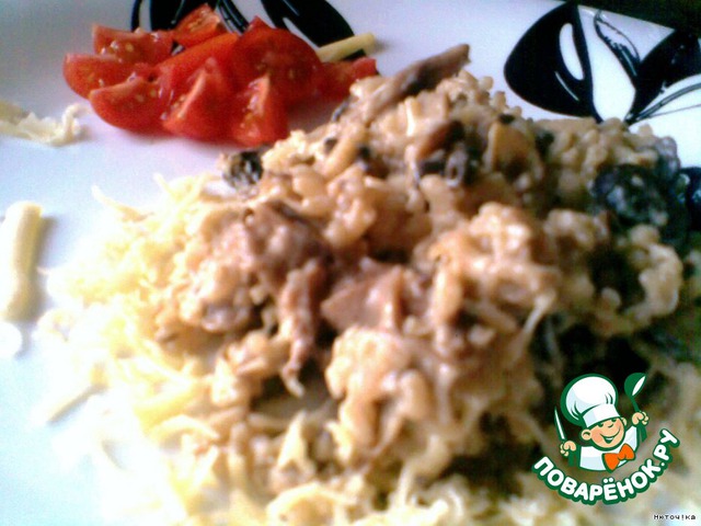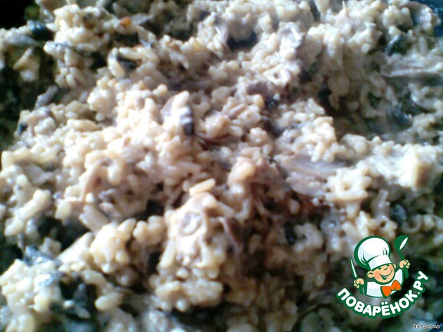 Ризотто — распространенное блюдо из риса в Северной Италии. - Википедия)) Итак, очень вкусная штука.. нежный рисок с насыщенными ароматами грибочков и чесночка... когда открывала крышку... аромат шeл ещe тот.. ням! Простенько, быстренько и со вкусом. :)