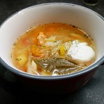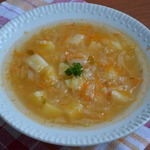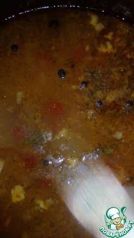Потом положить капусту вместе с водой, в которой она варилась, и пассерованный лук с морковкой и варить на медленном огне минут 20.