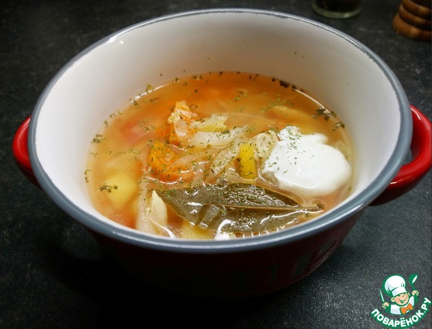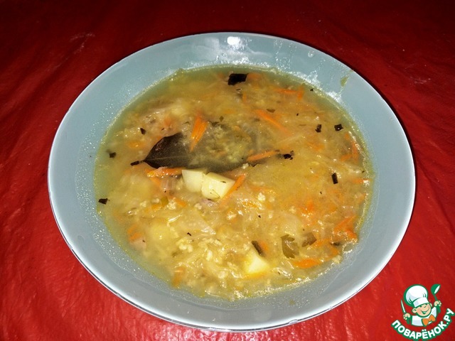 За 10 минут до конца варки посолить и положить лавровый лист. Если капуста была не очень кислая, я добавляю чуточку лимонной кислоты, потому что в капустняке должна чувствоваться кислота.