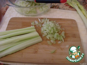 Нарезать стебли сельдерея как можно тоньше.