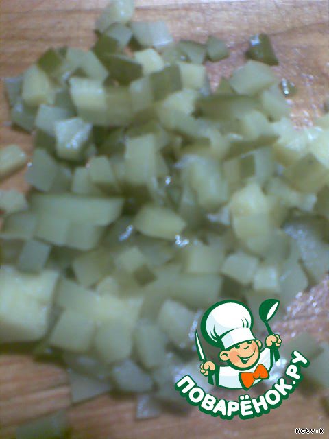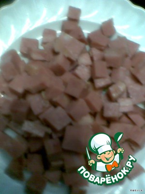 Когда огурчик и морковь станут мягкими, добавляем кубики ветчины, варим 5 минут...