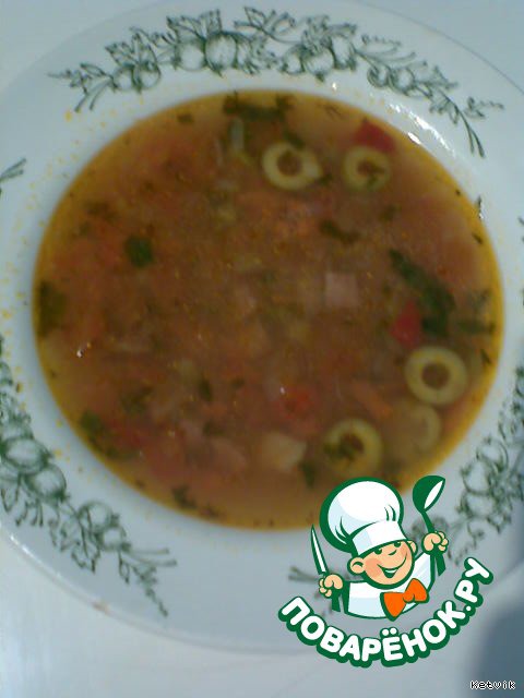 В конце добавляем оливки и зелень, даем кипнуть полминутки...