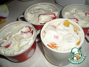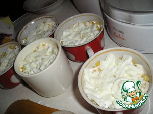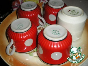 Достаем. Снимаем чашки. Украшаем зеленью и яичными желтками