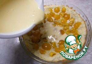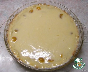 Заливаем верх пирога бисквитным тестом.И ставим в духовку на 20 минут.