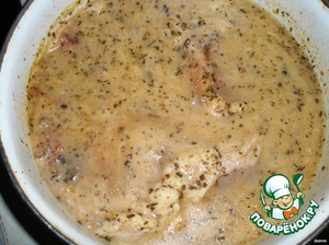 • Куриные бёдра натереть специями. Залить кефиром и оставить на ночь.