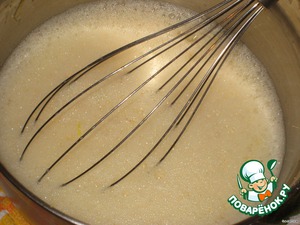 Масса должна взбиться в легкую пену сверху, но и долго взбивать тоже не стоит.