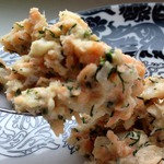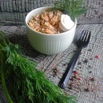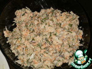 Измельчаем рыбу вилкой, попутно удаляя оставшиеся косточки.