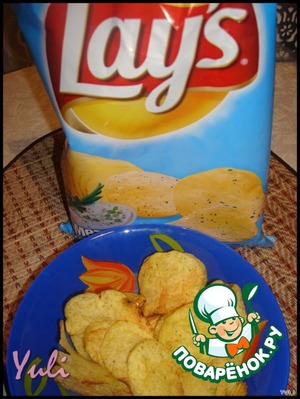 Измельчить картофельные чипсы. У меня Lays со сметаной и зеленым луком. Смешать с миндалем.