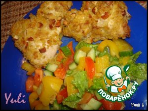 Нежная, сочная, ароматная, в панировке из миндаля и ЧИПСОВ!!! Очень вкусно, очень красиво, украсит как повседневный, так и праздничный стол, особенно, если еe подать с весенним витаминным салатом! И не забывайте, что помимо своих отличных вкусовых качеств, миндаль содержит различные минералы, необходимые для здоровья костей. Так что, угощайтесь курочкой с миндалем и будьте здоровы!