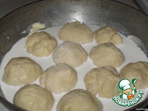 , по оригинальному рецепту они должны быть жирными. Так что смотрите сами. Делаем из теста шарики и опускаем в сливки. Смазываем желтком и даем расстояться. Выпекаем минут 50 на среднем огне.