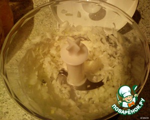 Лук немного измельчить в блендере.