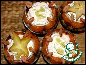 украсить креветками, дольками карамболы или лимона (необязательно).