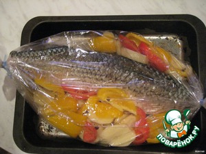 Вынимаем нашу рыбку, разрезаем рукав вдоль (обычно для этого на них есть перфорация), немного присаливаем овощи - и снова в духовку минут на 15 - чтоб зарумянилась!
