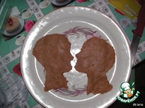 "Тесто" уложить в форме двух голов, я для этого рисовала трафареты. Положить в холодильник до застывания