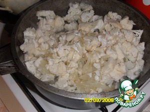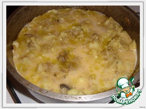 Тушим до готовности капусты. Взбиваем яйца, кладем специи и заливаем капусту. Даем схватиться массе.