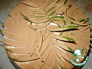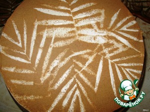 И посыпаем какао-порошком, я воспользовалась листьями цветка и сделала трафарет -