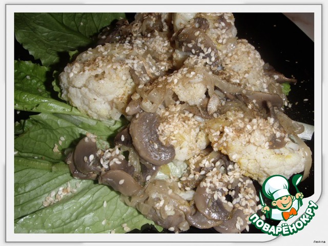 Рецепт "Цветная капуста с грибами и кунжутом":