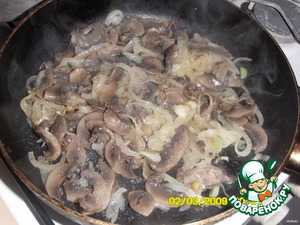 Шляпки от грибов нашинковать, потушить в сковородке