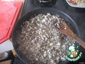 Нарезать шампиньоны и лук и обжарить на растительном масле до готовности.
