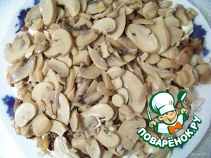 Грибы режем, обжариваем, охлаждаем, выкладываем следующим слоем.