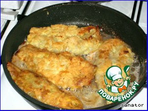 • И обжариваем с двух сторон на слабом огне до образования румяной корочки.