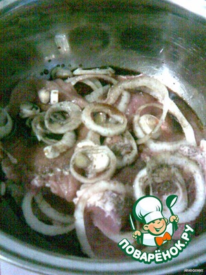 Маринуем мясо с луком в соевом соусе (пусть постоит хотя бы пару часов)