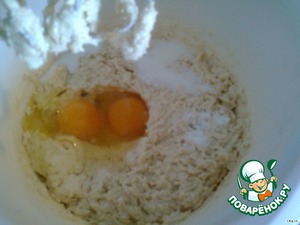 Добавляем яйца, молоко, ванилин, соль, разрыхлитель взбиваем еще мин. 2-3.