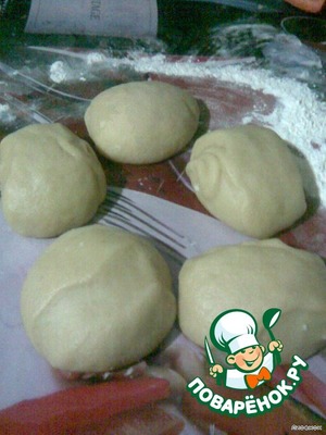 Затем добавляем муку и замешиваем тесто. Оно должно получиться мягким и эластичным. Делим его на 5 частей