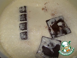 Емкость с десертным шоколадом убираем в холодное место остывать...а в белом разводим желатин..и тоже ставим остужаться -