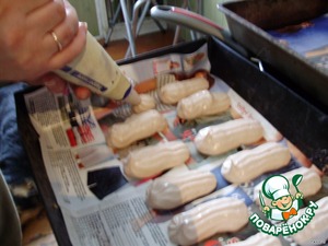 Отсаживаем печенье нужного размера и формы на застеленный бумагой кондитерский лист.