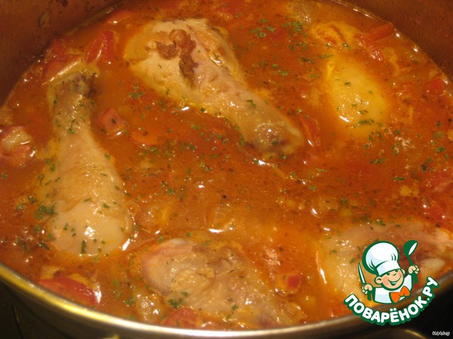 Если вы решили делать вместе с рисом, то после того, как закипел бульон, переложите все содержимое кастрюли в посуду для духовки, выложите поверх курицу, закройте крышкой (фольгой) и запекайте 40-45 минут при температуре 175-180*С или до готовности риса и курочки.
