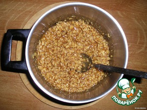 Спустя 15 минут снимите кастрюлю с огня и высыпьте туда измельчённые орешки.