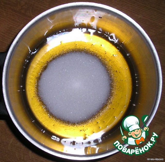 Смешайте в кастрюле 250 грамм мёда и 50 грамм сахара.
