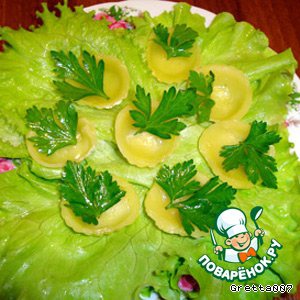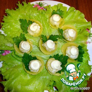 В данном случае начинка состояла из листиков петрушки, куриного белка, обрезков сыра, майонеза и...