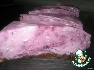 Выложить на корж сначала творожную смесь, затем черничное пюре.