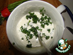 Предварительно сметану посолите.. поперчите... порежьте в нее зелень петрушки.. укропа