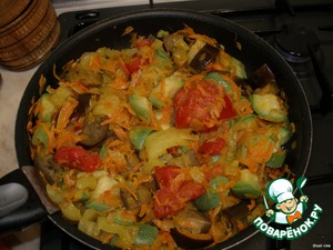 А затем в сковороду отправлялось все то, что находилось в морозилке: кабачки,