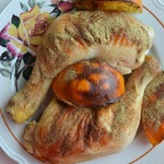 Окорочка натереть тремя дольками апельсина, натереть чесноком и обвалять в соусе (соль-перец-приправа -оливковое масло).