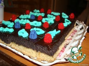 Дать торту остынуть, разрезать на квадраты и выложить на блюдо.