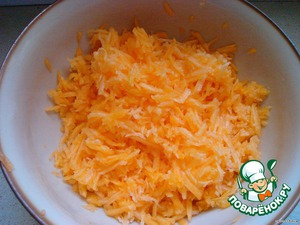Трём на тёрке тыкву (кабачки), солим и оставляем на полчаса.