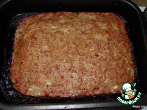 Форму для выпечки хлеба выстелить бумагой для выпечки, выложить половину фарша, посыпать тeртым сыром, на сыр выложить начинку (у меня остался салат с копчeной форелью) и накрыть второй частью фарша.