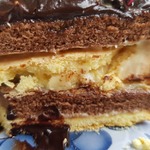 Верхушку торта покрываем шоколадной глазурью. В серединку кладем немного крема и проводим от центра к краю сектора.