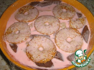 я еще положила печенько (тоже остатки), чтобы плоское дно было -