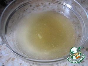 Теперь открываем ананасы и соком заливаем желатин, пускай набухает
