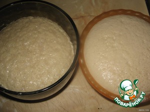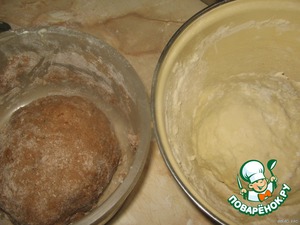 Вот наши два вида теста. Немного вымесив их, оставляем подниматься, накрыв полотенцем.