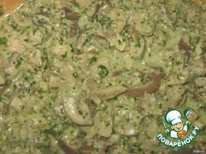 Разбавить бульоном до консистенции соуса. Добавить приправы.