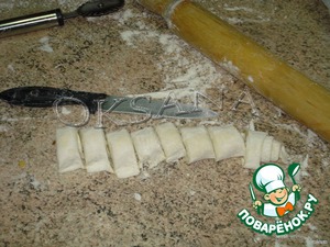Разрезаю вот на такие порционные кусочки (большие не стоит делать - удобнее потом брать готовые маленькие штучки и сразу класть их в рот). -
