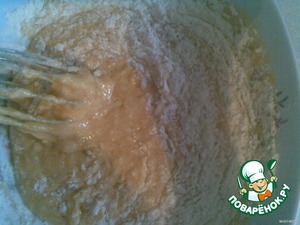 Добавляем сахар, яйца и муку. Тщательно размешиваем.